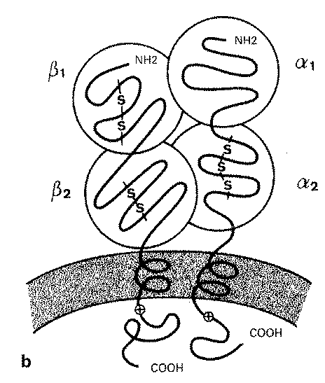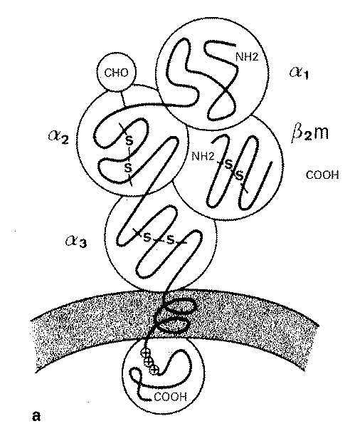 Figure 810-2 Structure des AG HLA de classe I (a) et de classe II (b). (D’ apres A Carpentier et D Farge, Transplantation d’ organes, 1 992, Paris, Medecine-Sciences Flammarion.)
